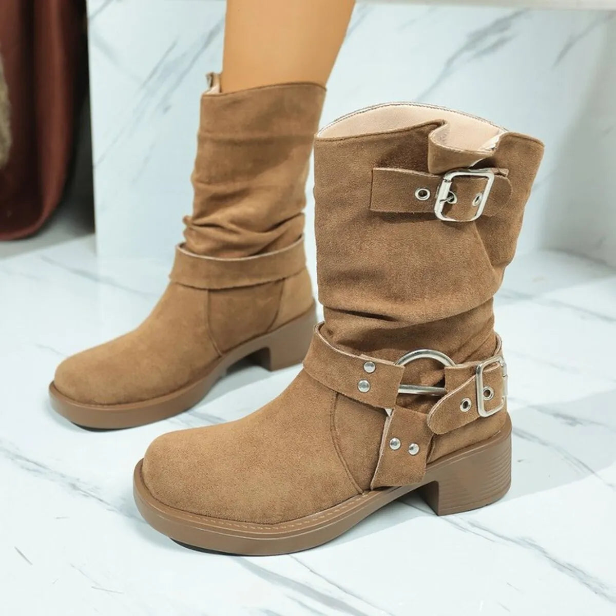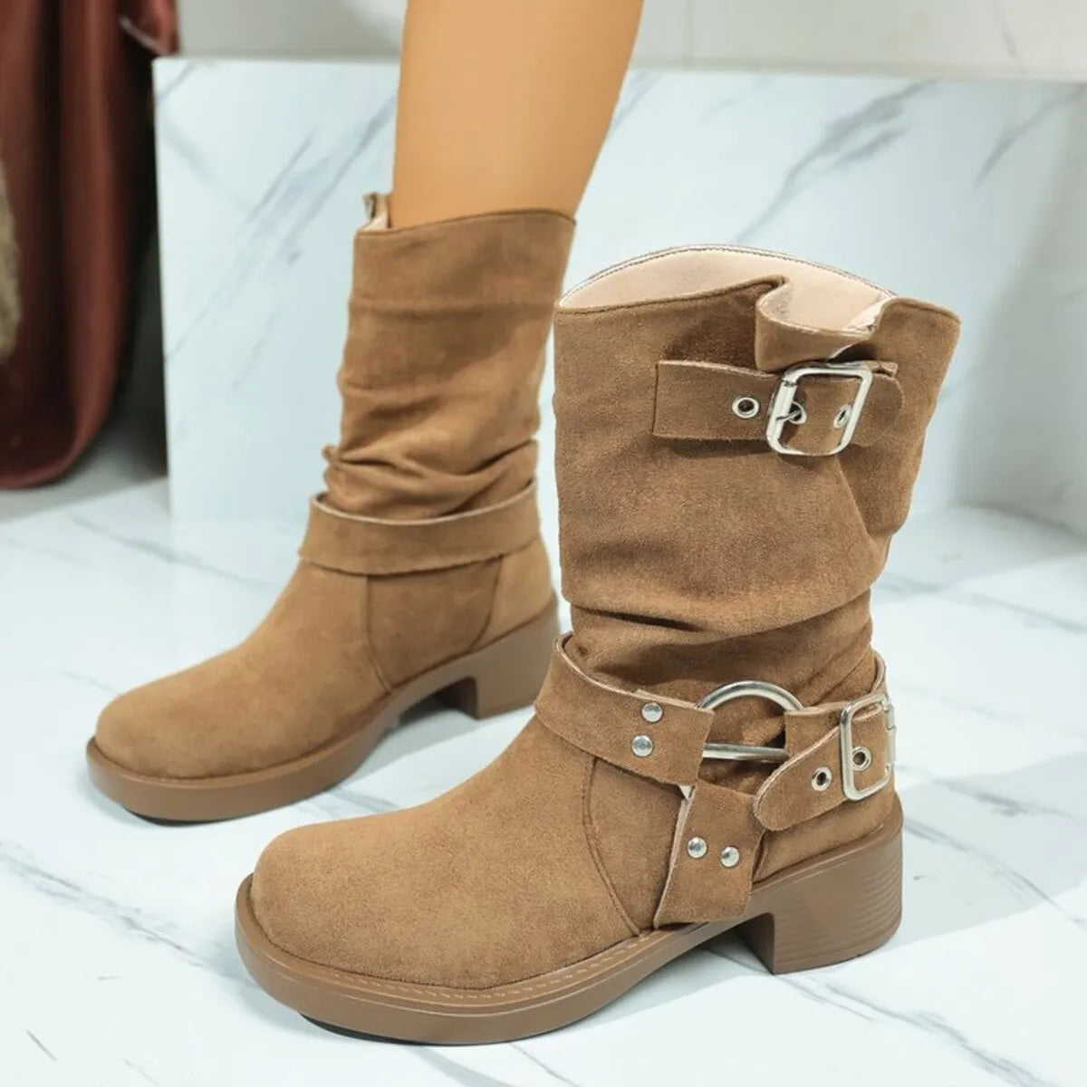 Round Toe Block Heels Boots