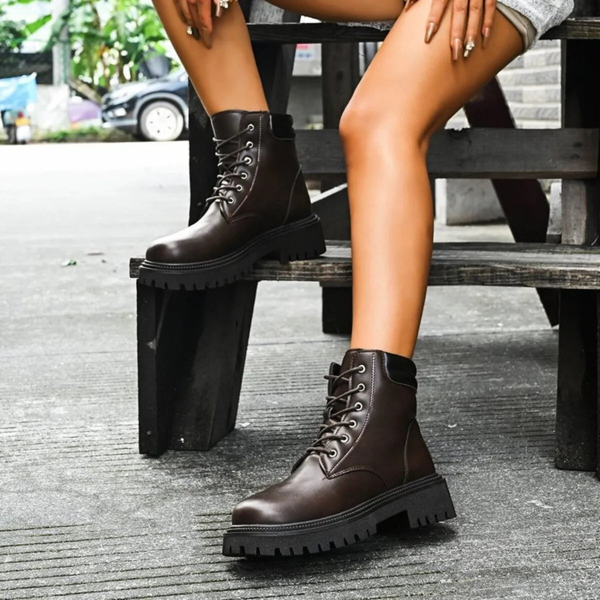 Round Toe Lace Up Platform Boots