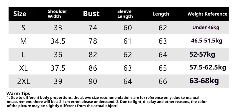 1. Asian sizes are 1 to 2 sizes smaller than European and American people. Choose the larger size if your size between two sizes. Please allow 2-3cm differences due to manual measurement. 2. Please check the size chart carefully before you buy the item, if you don't know how to choose size, please contact our customer service. 3.As you know, the different computers display colors differently, the color of the actual item may vary slightly from the following images.